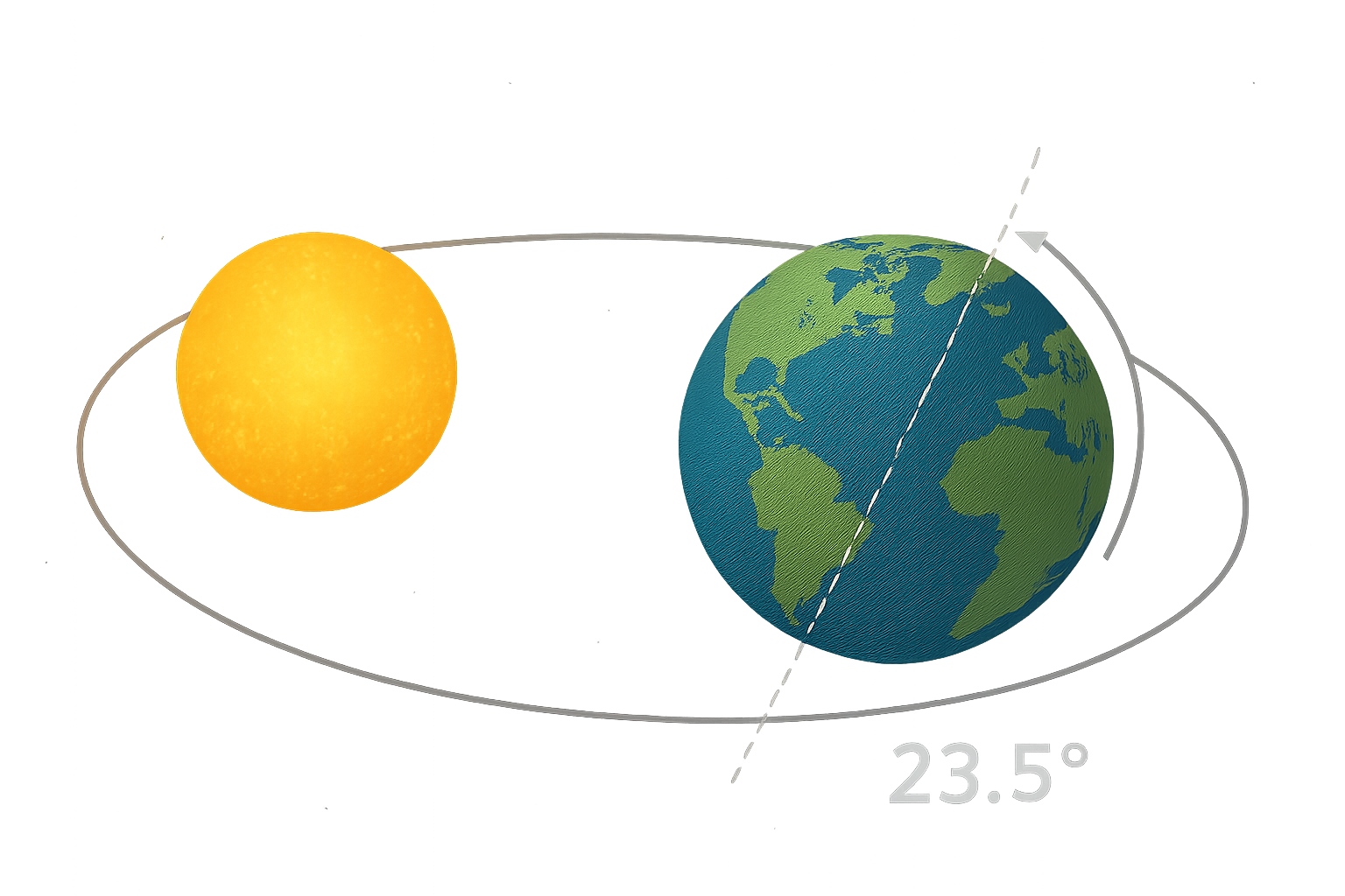 Att vi har årstider – vår, sommar, höst och vinter – beror på något som kanske känns förvånande: jordens lutning. Många tror att årstiderna handlar om hur långt bort jorden är från solen, men det stämmer inte. Faktum är att jorden faktiskt är närmast solen på vintern sett från norra halvklotet. Det som i stället styr årstiderna är att jorden lutar ungefär 23,5 grader i förhållande till sin bana runt solen. Den här lutningen är helt avgörande för hur solens strålar träffar jordytan.