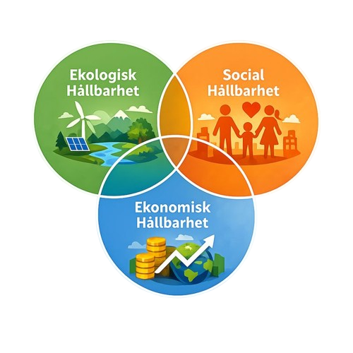 Att skapa en hållbar värld handlar om att vi människor ska kunna leva bra liv idag utan att förstöra möjligheterna för framtidens generationer att göra detsamma. Det betyder att vi måste ta hand om vår planet, våra samhällen och våra resurser på ett sätt som gör att allt räcker och fungerar även i framtiden. Hållbar utveckling är alltså inte bara en miljöfråga – det handlar också om hur vi behandlar varandra och hur vi använder pengar och resurser på ett klokt sätt. För att förstå hållbar utveckling brukar man dela in det i tre delar: ekologisk, social och ekonomisk hållbarhet. Dessa tre hänger ihop, och om en del brister påverkas de andra.