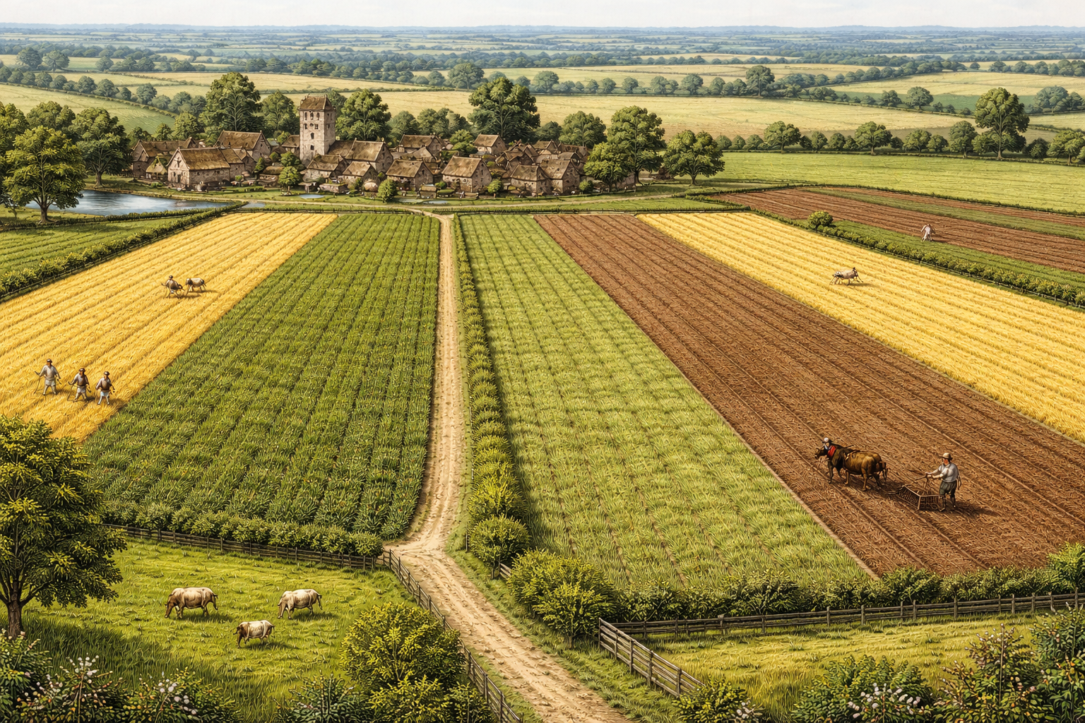Detta system byggde på samarbete. Bönderna behövde komma överens om när man skulle så, skörda och låta marken vila. Men systemet gjorde det också svårt att införa nya och effektivare metoder, eftersom alla var beroende av varandra och traditionerna var starka. Jordbruket var grunden för hela ekonomin. Om skördarna blev goda fanns det tillräckligt med mat och människor kunde sälja överskott på marknader. Om skördarna slog fel kunde det däremot leda till hunger och höga matpriser. Det fanns inga moderna transporter som snabbt kunde frakta mat från andra delar av landet, så en dålig skörd i ett område kunde få allvarliga konsekvenser.