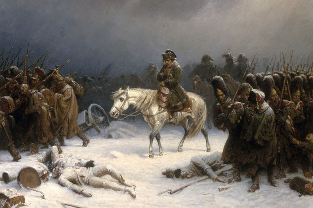 Men Napoleons dröm om total dominans skulle bli hans fall. 1812 invaderade han Ryssland med över 600 000 soldater – en av historiens största arméer. Men vinterkylan och brist på mat krossade invasionen. Endast en bråkdel av de franska soldaterna återvände hem. Flera av Frankrikes fiender såg nu sin chans. Land efter land gick samman och slog tillbaka. 1814 tvingades Napoleon abdikera och skickades i exil till ön Elba. Men historien var inte riktigt slut.