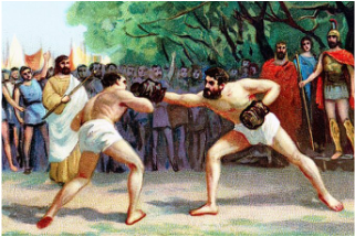 De fem dagar långa spelen hölls på sommaren och var Greklands viktigaste idrottsfest. I samband med tävlingarna var allt krigande förbjudet i Grekland. Det skulle råda en helig månadslång vapenvila så att alla greker kunde ta sig till festspelen i Olympia och därifrån utan att riskera livet.