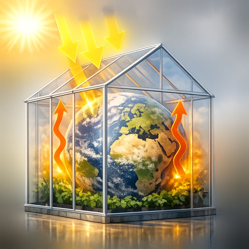 Som nämnts i tidigare avsnitt om Växthuseffekten fungerar växthusgaser som koldioxid, metan och vattenånga som en filt runt planeten och håller kvar värme. Utan dem skulle jorden vara iskall och obeboelig. Men problemet uppstår när mängden växthusgaser blir för stor. Detta kallas för den förstärkta växthuseffekten som beror på den mänskliga aktiviteten på jorden.