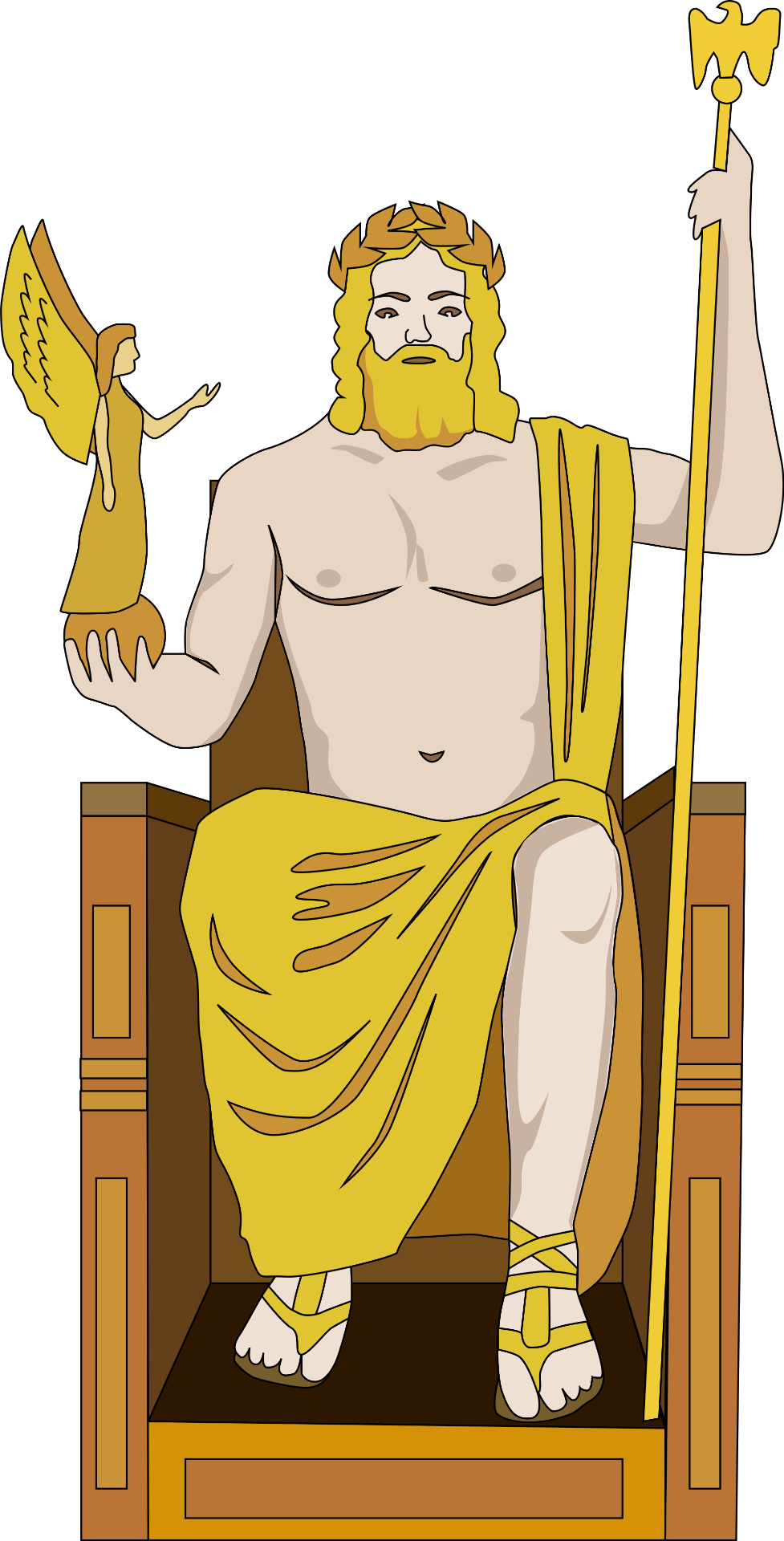 Zeusstatyn i Olympia var ett av de mest imponerande konstverken i den grekiska antiken. Den skapades omkring 435 f.Kr. av den berömde skulptören Feidias, samma konstnÀr som ocksÄ ledde arbetet med statyn av Athena i Parthenon i Aten. Statyn stod i Zeustemplet i Olympia, platsen dÀr de olympiska spelen hölls till guden Zeus Àra. Den var ett religiöst och konstnÀrligt mÀsterverk, avsett att förmedla gudens makt, visdom och majestÀt. Zeus framstÀlldes sittande pÄ en rikt utsmyckad tron, hÄllande en spira i ena handen och en segergudinna (Nike) i den andra. SjÀlva kroppen var tillverkad av elfenben, medan klÀderna och detaljerna bestod av guld. Kombinationen av dessa dyrbara material kallades chryselefantin, en teknik som var mycket avancerad för sin tid.